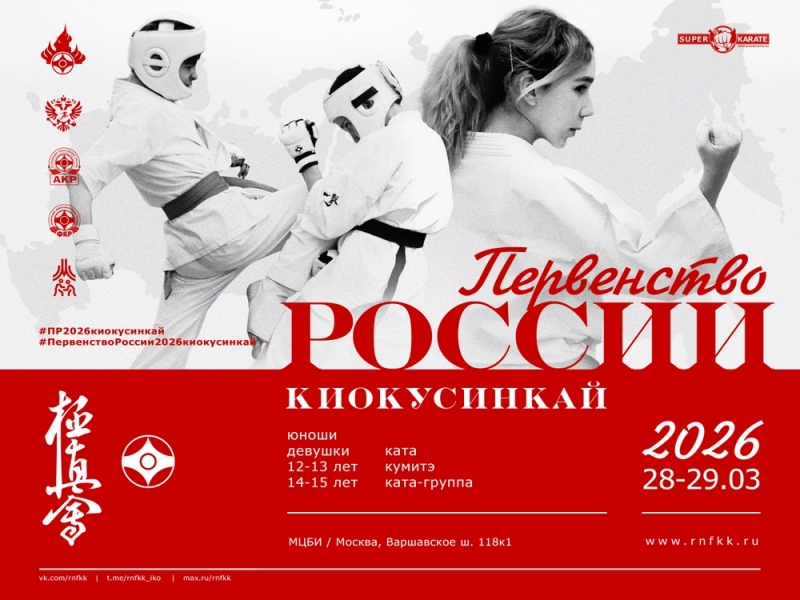 Просим обратить внимание на следующую информацию: Так как новый ЕВСК по виду спорта "киокусинкай" на данный момент не вступил в силу, возрастная категория "10-11 лет" не запланирована к проведению на Первенстве России в марте 2026 года.