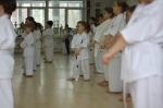 Тренировались действительно все, от мала до велика. Самым младшим каратистам - всего по четыре года. Всех учеников федерации разделили на 12 групп - в зависмости от их кю и возраста. Над каждой группой шефство взяли по два инструктора. С утра и до позднего вечера в открытые окна додже прохожие слышали «Кияй!» спортсменов и счет тренеров: «Ичи, ни, сан...».