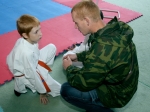 Александр Шумлянский (1 дан, Азов) со своими юными воспитанниками поразил присутствующих своей программой. Сначала он выполнил ката с катаной, а затем юные каратисты продемонстрировали приемы самообороны.