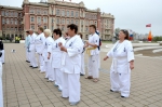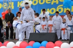 Более 100 каратистов киокусинкай в возрасте от 4 до 72 лет заполнили площадь и стали в стройные ряды в соответствии с цветами поясов.