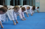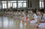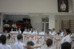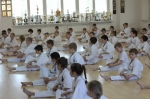 Тренировались действительно все, от мала до велика. Самым младшим каратистам - всего по четыре года. Всех учеников федерации разделили на 12 групп - в зависмости от их кю и возраста. Над каждой группой шефство взяли по два инструктора. С утра и до позднего вечера в открытые окна додже прохожие слышали «Кияй!» спортсменов и счет тренеров: «Ичи, ни, сан...».