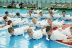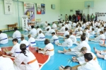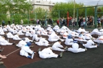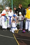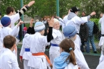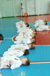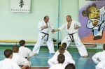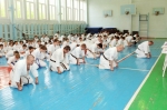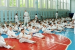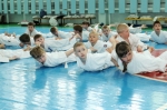 Ученики были поделены на три возрастные группы и экзамены для них проводились в разное время. У младших учеников 5-10 лет за день до основного экзамена прошли традиционные в бранче зачеты по физподготовке (прыжок с места, метание мяча из-за головы сидя, бег 30 метров).