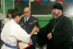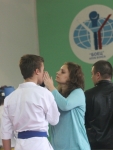 Александр Шумлянский (1 дан, Азов) со своими юными воспитанниками поразил присутствующих своей программой. Сначала он выполнил ката с катаной, а затем юные каратисты продемонстрировали приемы самообороны.