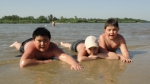 В одни из майских выходных каратисты города Азова разных возрастов (от 3 до 72 лет), под баян и гитару вышли потренироваться и отдохнуть на реку Дон…