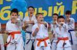 Более 100 каратистов киокусинкай в возрасте от 4 до 72 лет заполнили площадь и стали в стройные ряды в соответствии с цветами поясов.