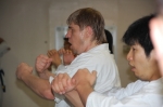 Фотографа из World Karate заинтересовала спарринговая работа пары шиханов Сугимура - Ипатов. Они весело гоняли друг друга и старались подловить, то на скорости, то на финтах...