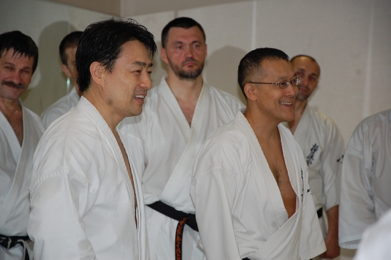 Временами шутил и приводил смешные и интересные примеры из своей жизни. Например, он рассказал, что известный боец Чичиноге в свое время употреблял много алкоголя и мог тренироваться в любом состоянии. Несмотря на, казалось бы несовместимые со спортом, возлияния, он вполне достойно и тренировался, и выступал на соревнованиях. Канчо этот пример привел, чтобы показать, что чемпион должен быть чемпионом во всем и тем более в каратэ, в каком состоянии бы он не был (так как перевод был тройным японский/английский/русский, то возможно я услышал то, что хотел услышать - главред).