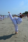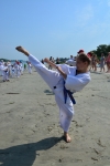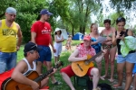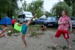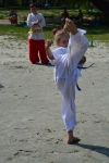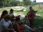 Пробежка по песчаному пляжу, отработка ударов в воде, купание, игры и песни под гитару и балалайку.